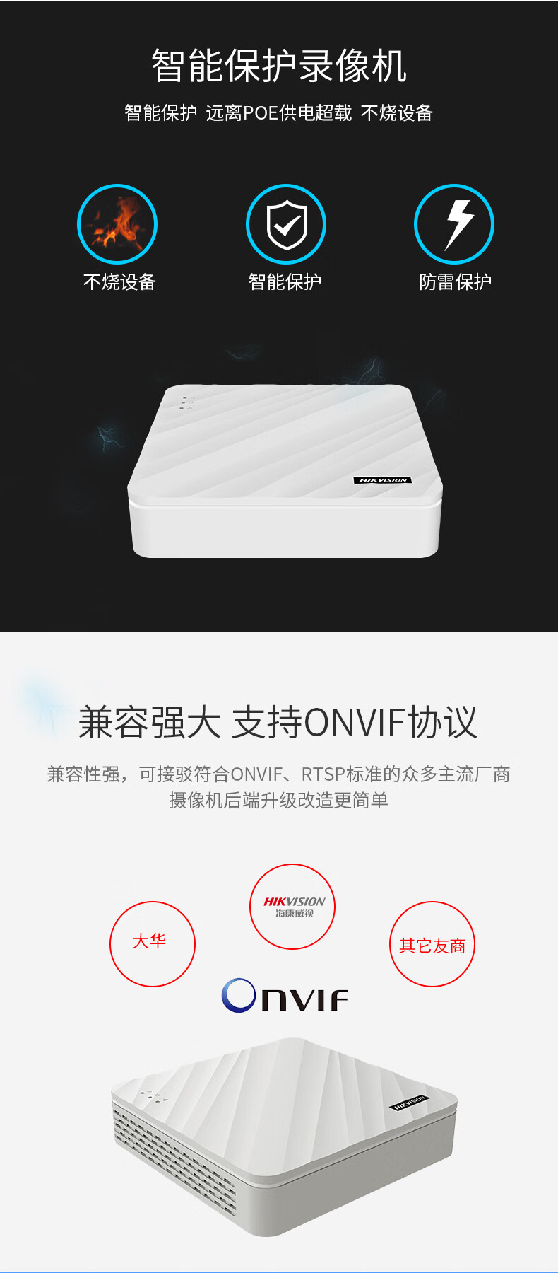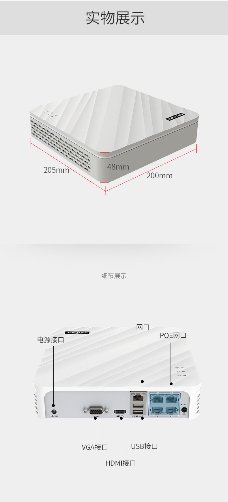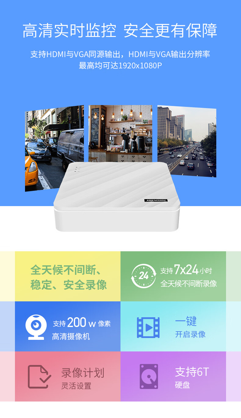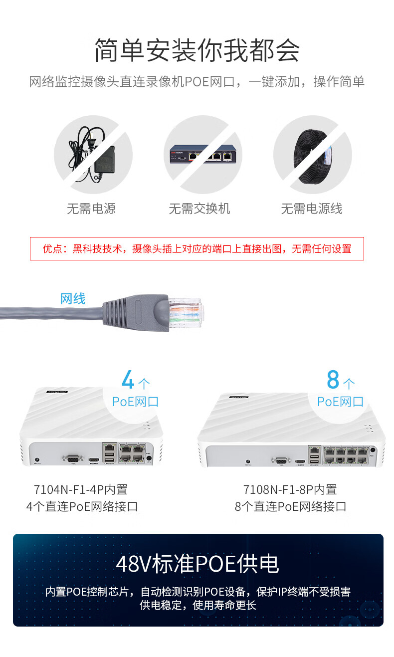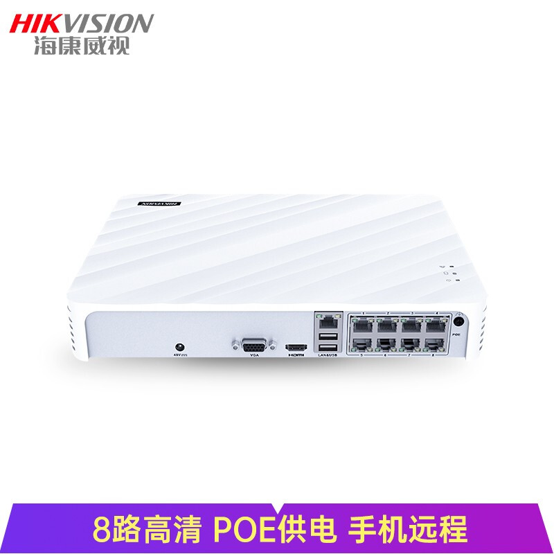 海康威视 监控录像机 硬盘录像机NVR主机4路8路带POE供电 DS-7108N-F1/8P 【8口POE•录像机】7108N-F1/8P 自营