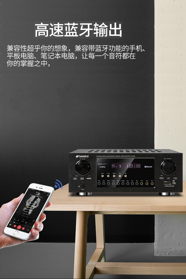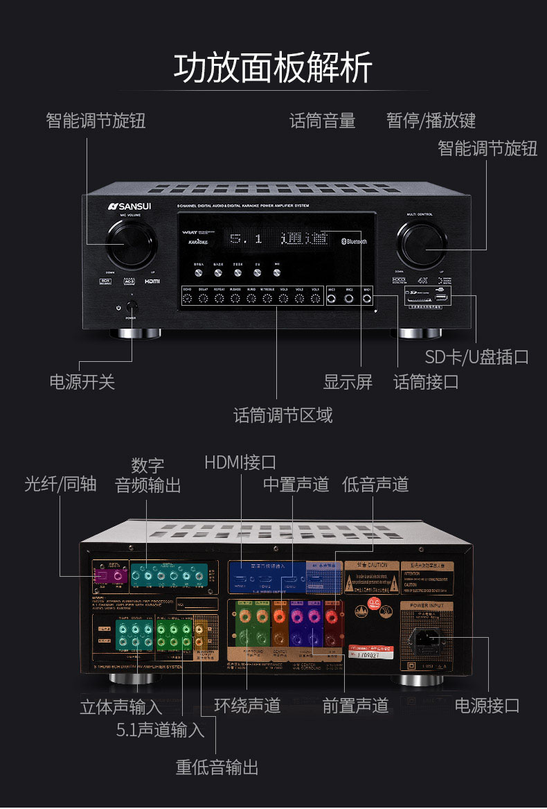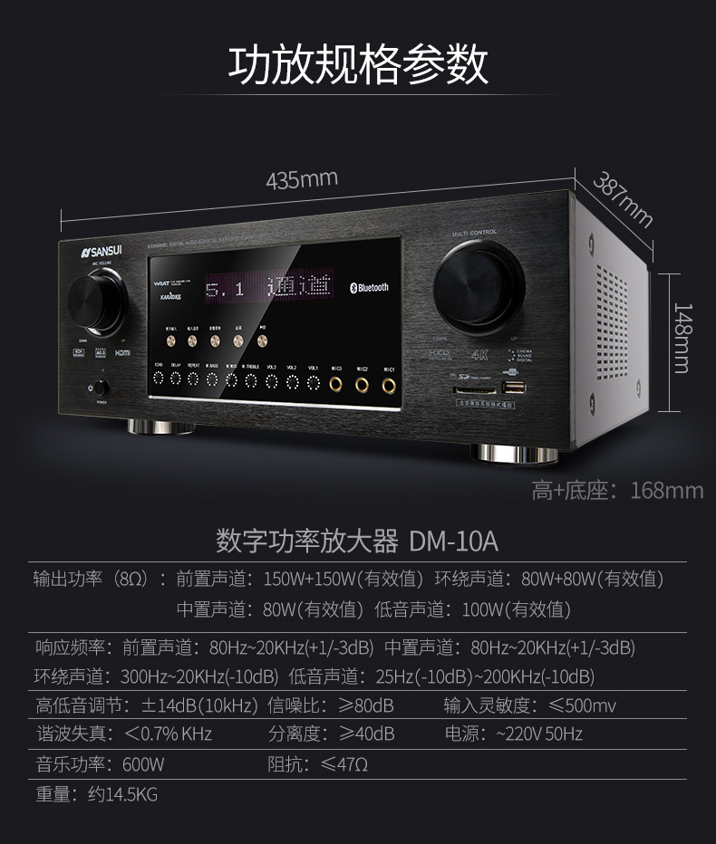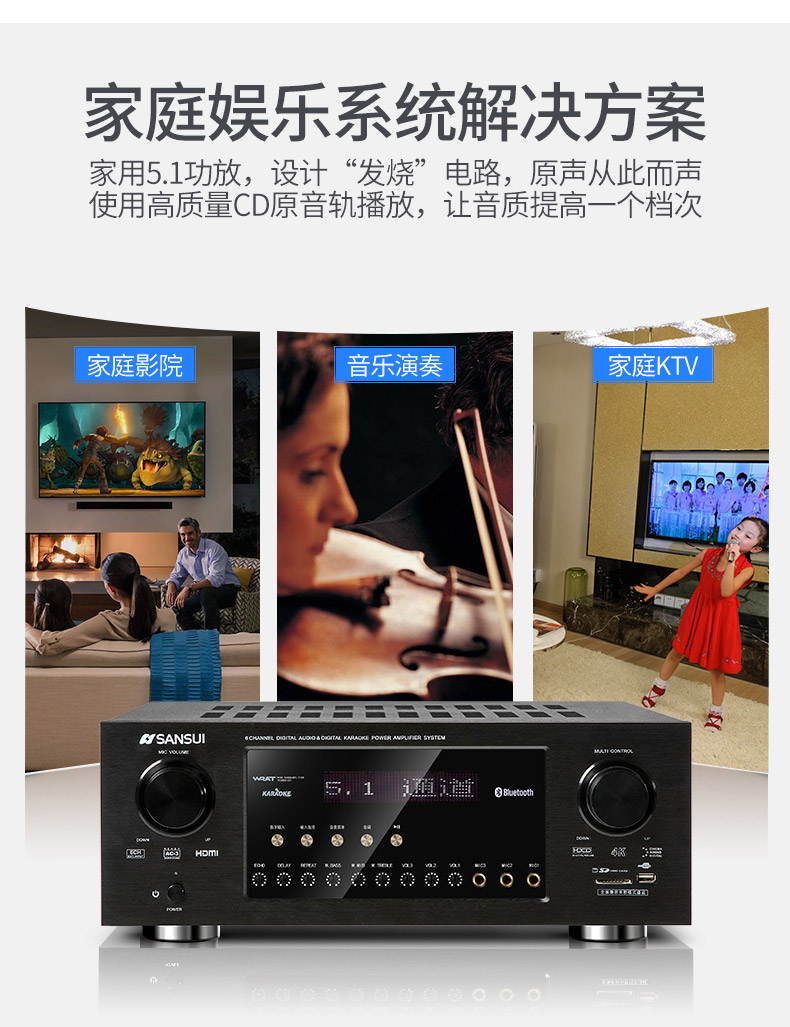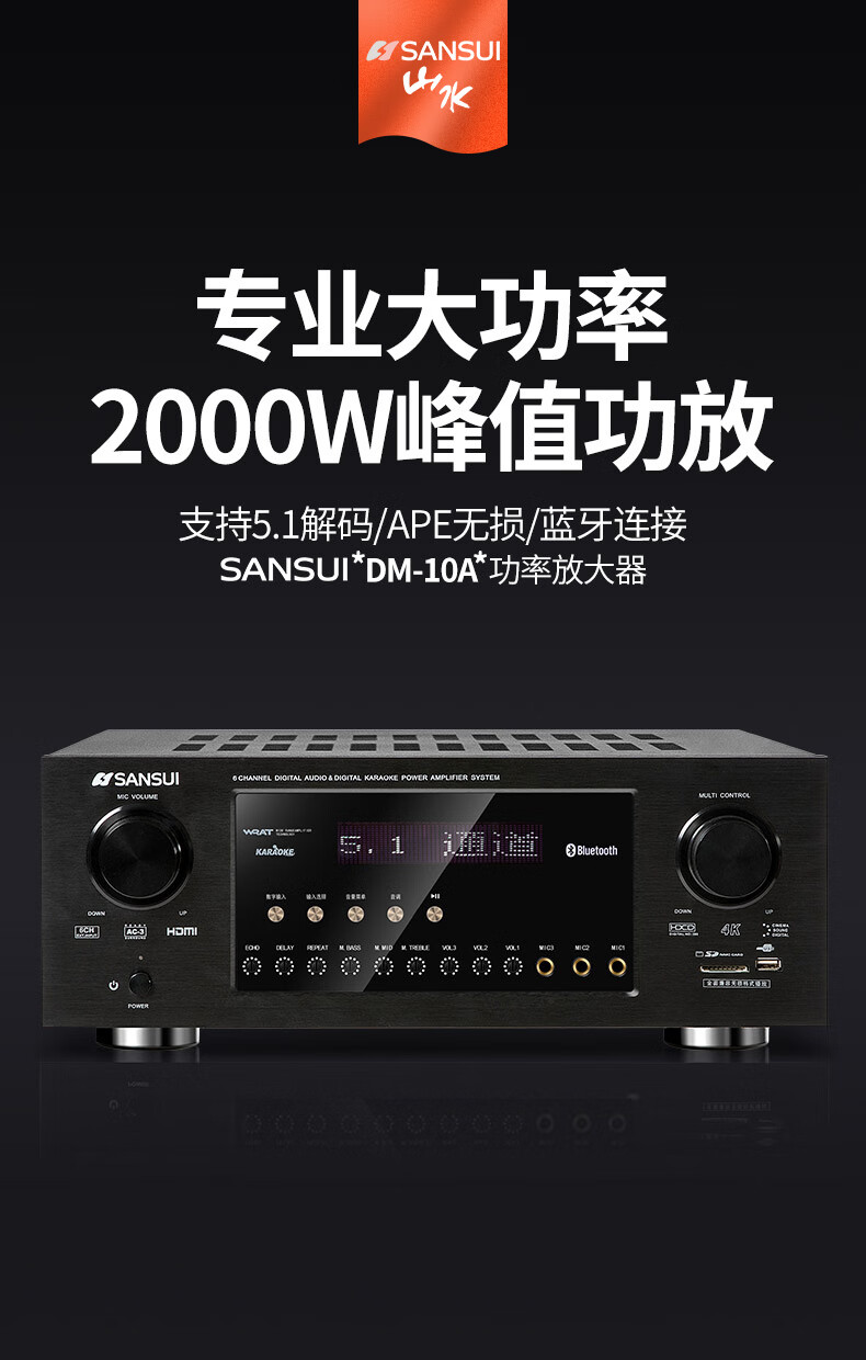山水(SANSUI)DM-10A 家庭影院功放机 音响 音箱 5.1声道功放 大功率 支持蓝牙/USB 黑色 旗舰版 自营