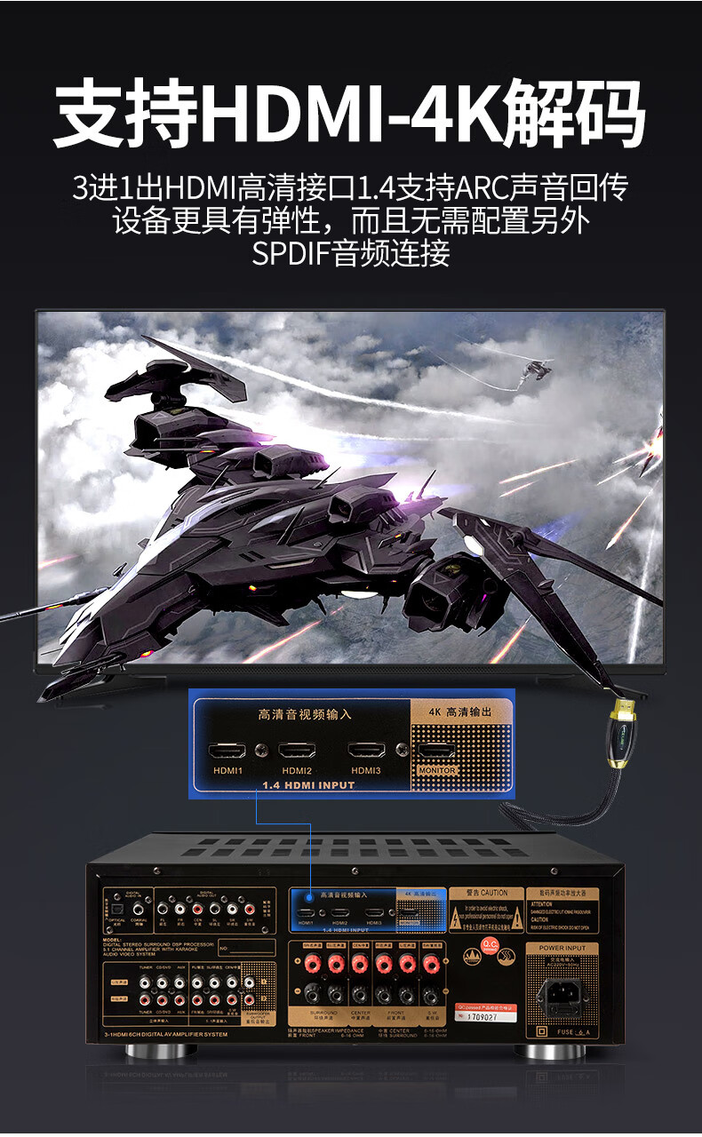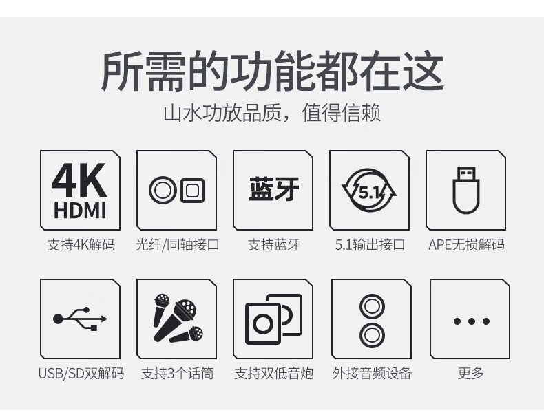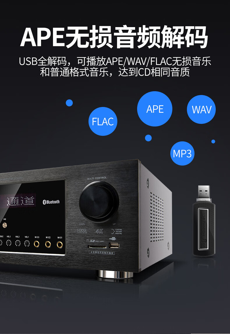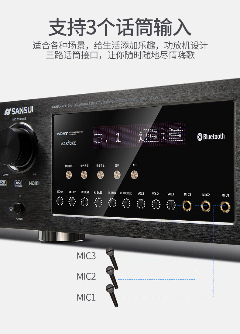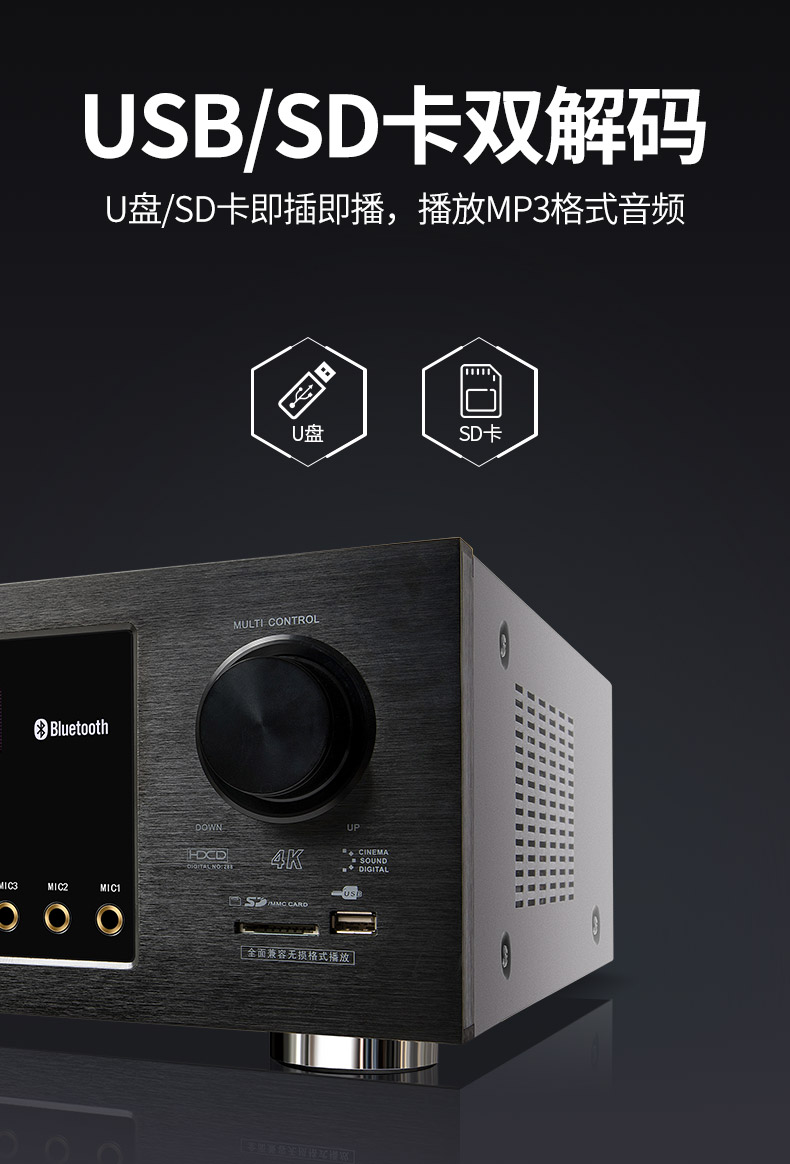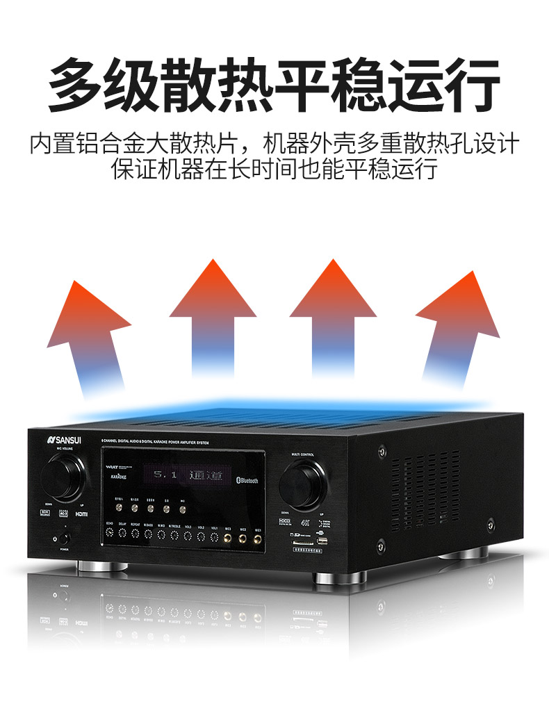 山水(SANSUI)DM-10A 家庭影院功放机 音响 音箱 5.1声道功放 大功率 支持蓝牙/USB 黑色 旗舰版 自营