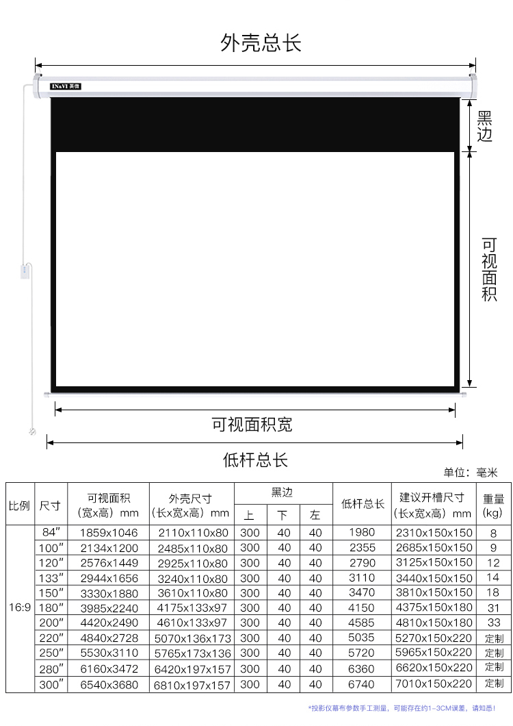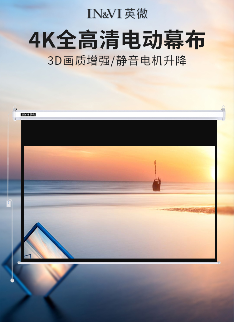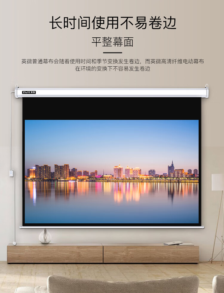 ¥1999.00英微(IN&VI)ZB-JD/Q1 120英寸4:3投影仪幕布电动投影幕布家用办公投影布方形外壳遥控投影幕