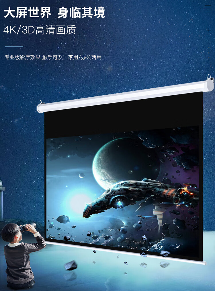 ¥137.00品跃(PInYUE)120英寸16:9投影幕布投影布遥控电动拉线幕家用4k纳米软白投影仪商用办公幕布