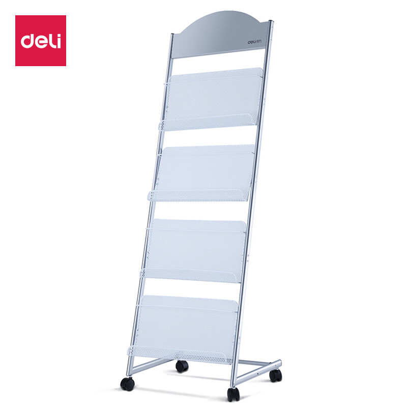 得力(deli)四层金属报刊杂志架书报架 宣传册展示架 办公室前台落地资料架 高1.45米 9307 自营