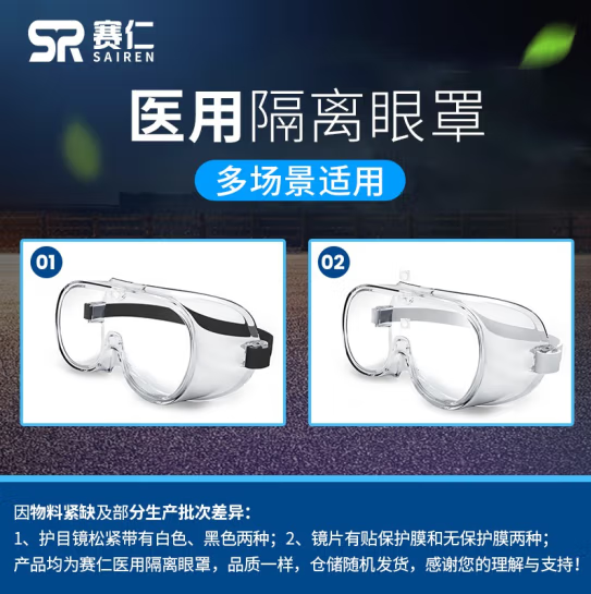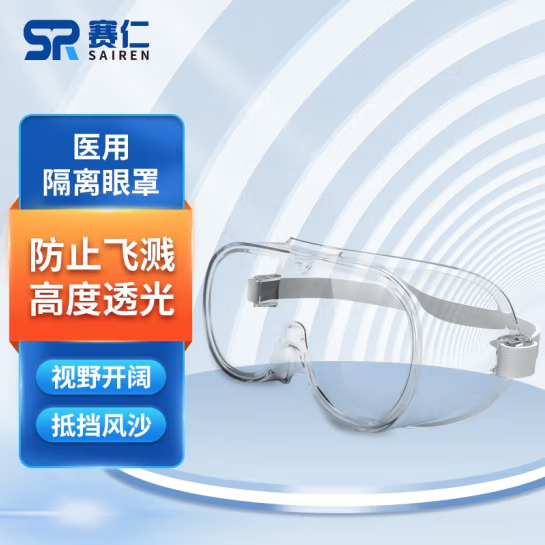 赛仁 医用护目镜 全封闭式 医用隔离眼罩 飞沫风沙防护眼镜 内部可带近视镜 自营