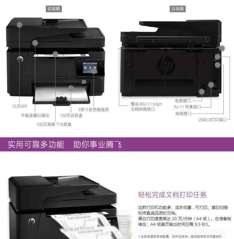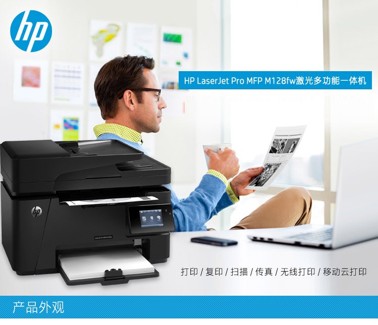惠普 黑白激光打印机 升级型号132fw 多功能商用一体机 无线打印复印扫描传真 M128fw 自营