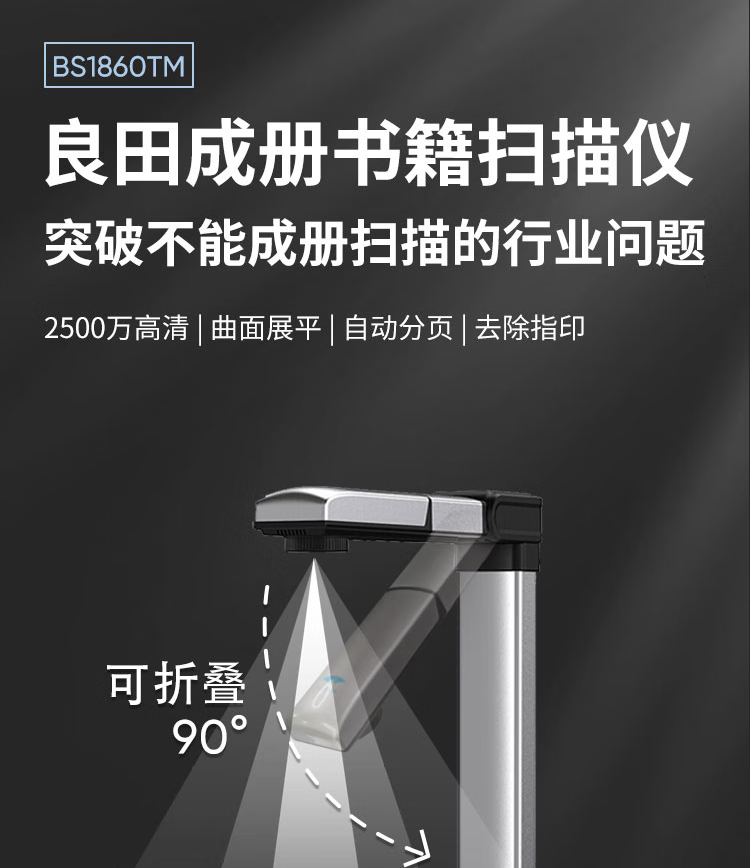 ¥6000.00良田(eloam)高拍仪2500万像素办公发票文件A3高速高清扫描仪 书籍自动曲面展平 实物视频展台投影 BS1860TM